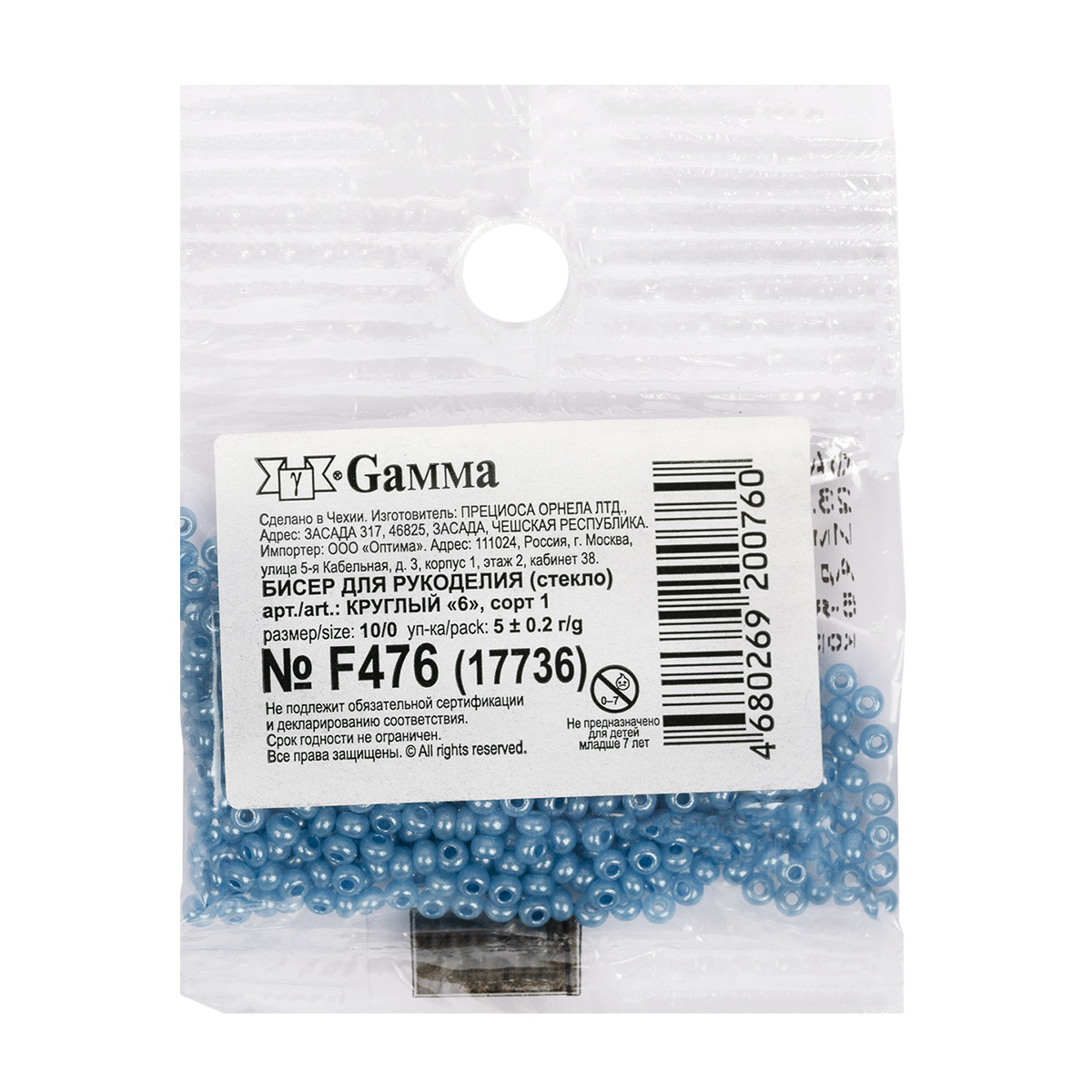 Бисер Чехия Preciosa круглый, фасовка 5 грамм. Первый сорт бисера. Фасовка Gamma
